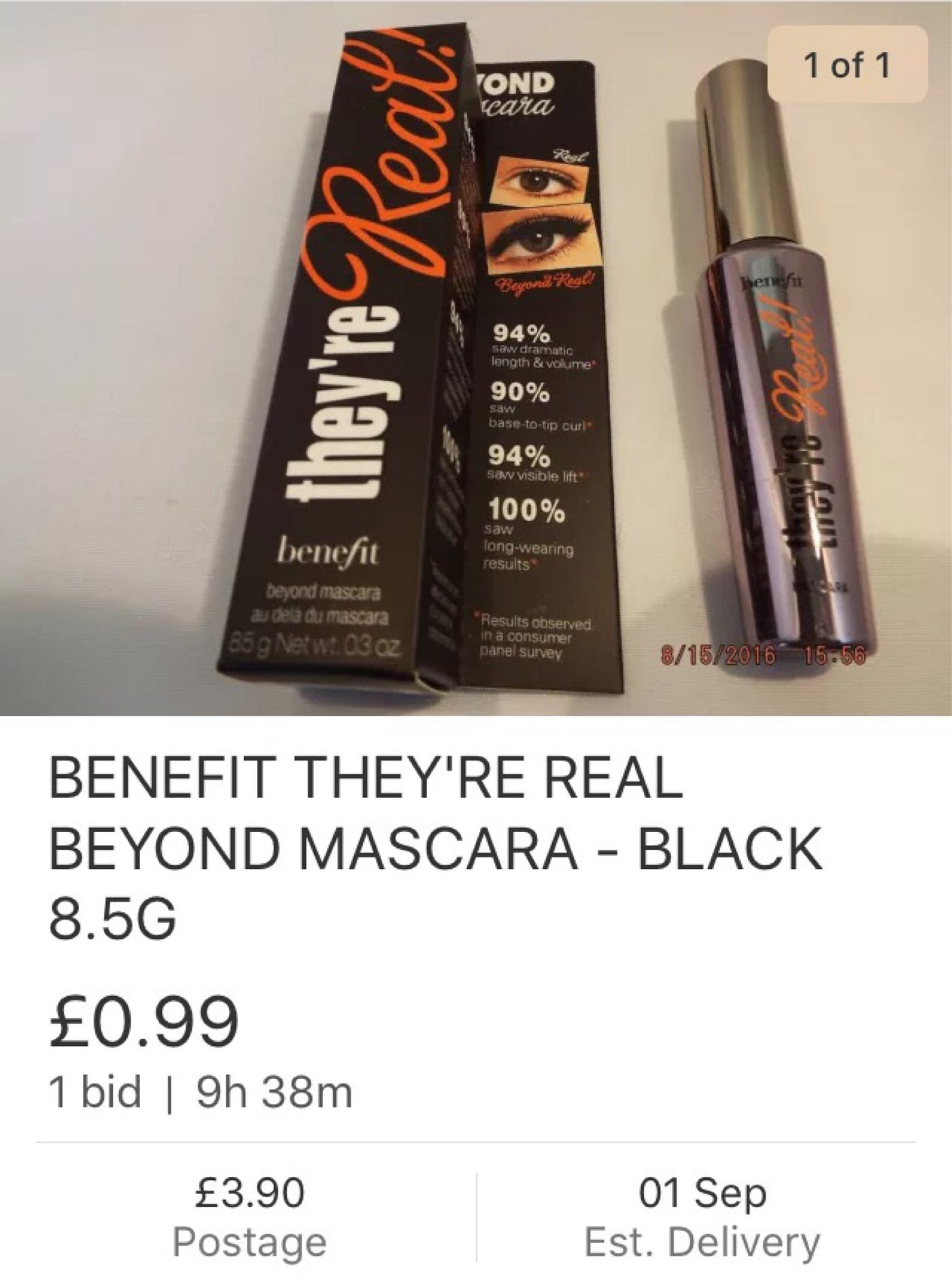 My friend'southward mum had bought the mascara off eBay for her. A quick search showed dozens of sellers with good feedback selling convincing looking products at super low prices. Information technology all looked kosher, I tin can see why anyone would exist taken in.